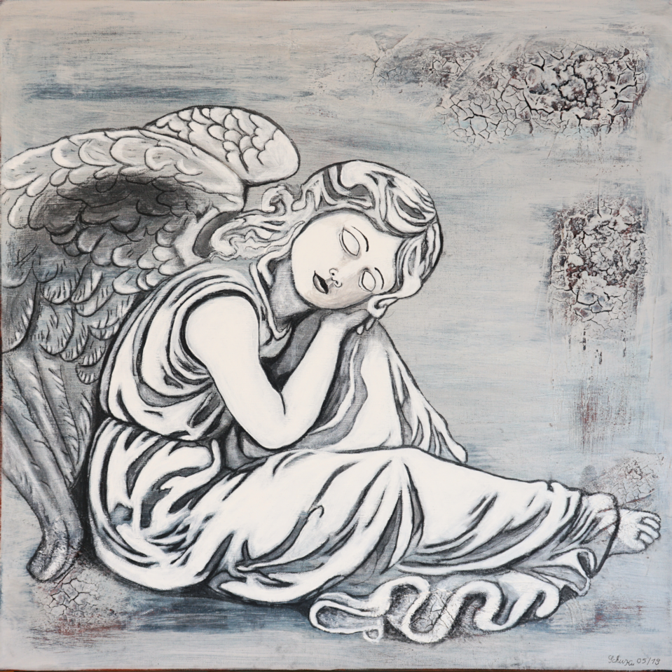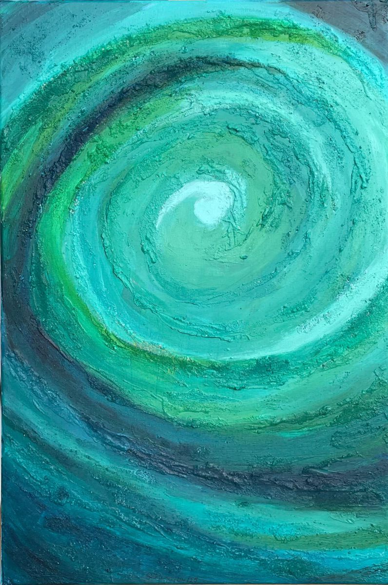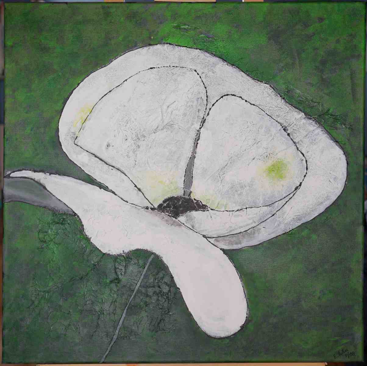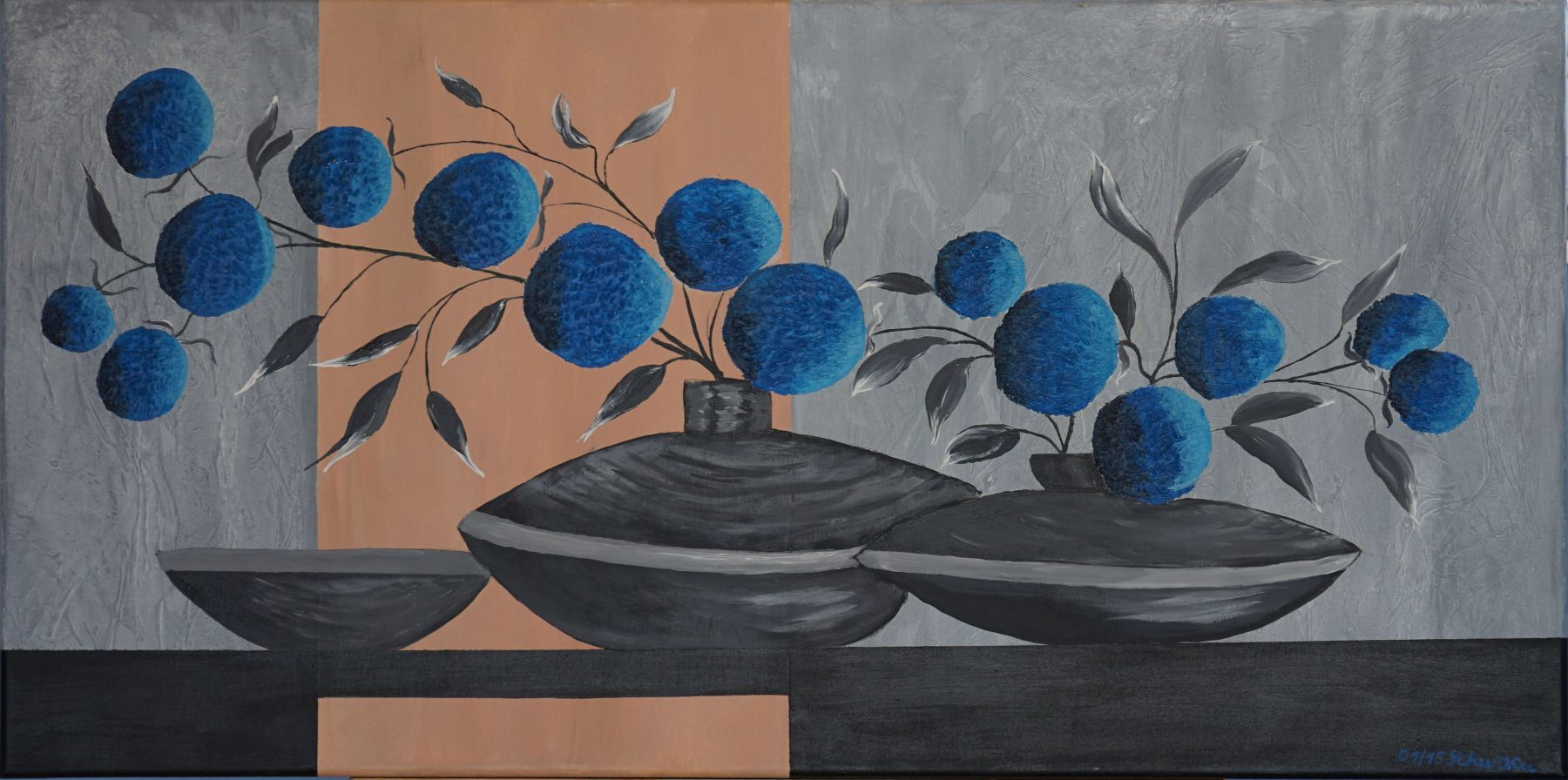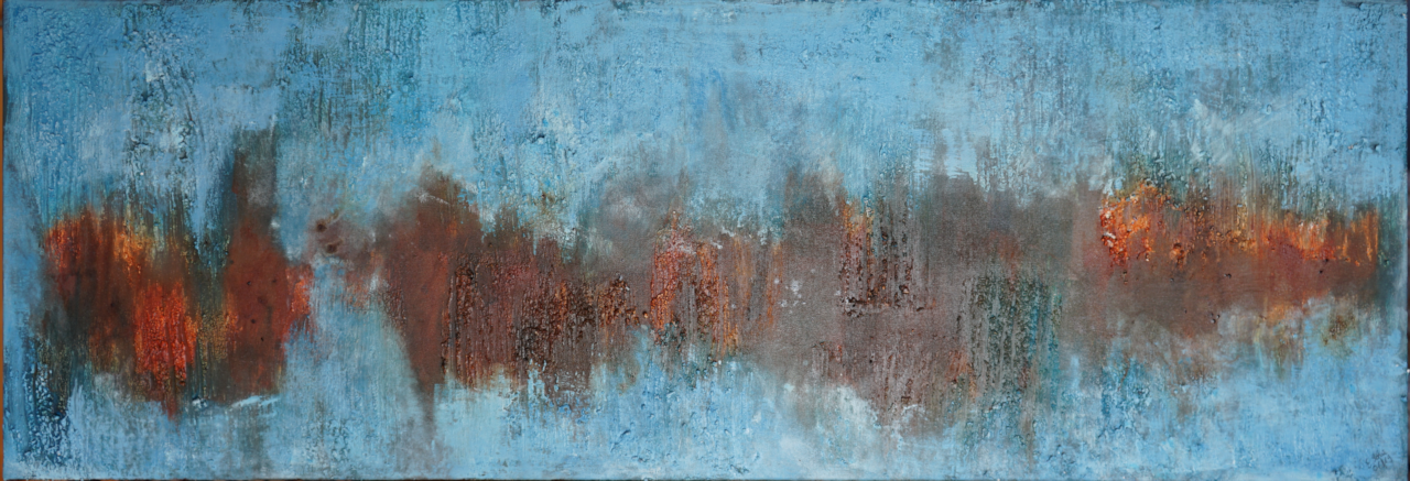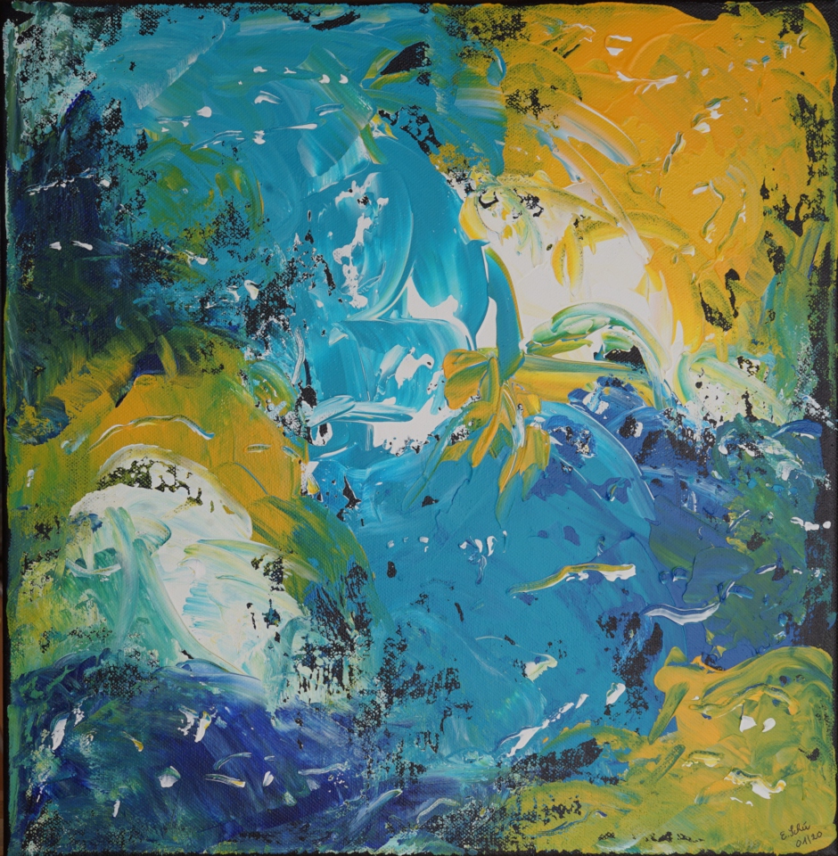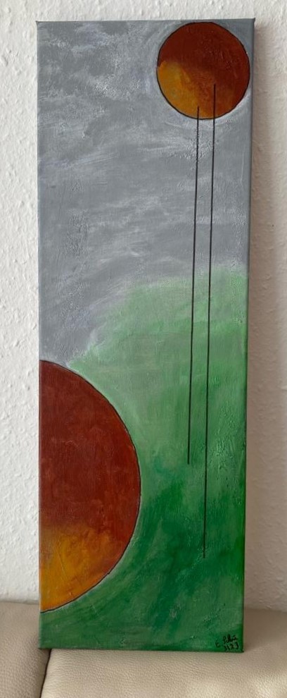 Bedingt durch den Umzug nach Waldshut schlief das künstlerische Schaffen ein und wurde bei einer Reha 2013 wieder geweckt. Allerdings nicht Seidenmalerei sondern Malen mit Acryl. In Basel kamen wir dann zu Violette aus Rixheim (F), die uns Spachtel und Pinseltechniken beibrachte. Seit 2016 erweitert die Künstlerin Gaby Topka aus Dogern unsere künstlerischen Fähigkeiten. Ich bevorzuge die abstrakte Malerei, mit und ohne Collagen.