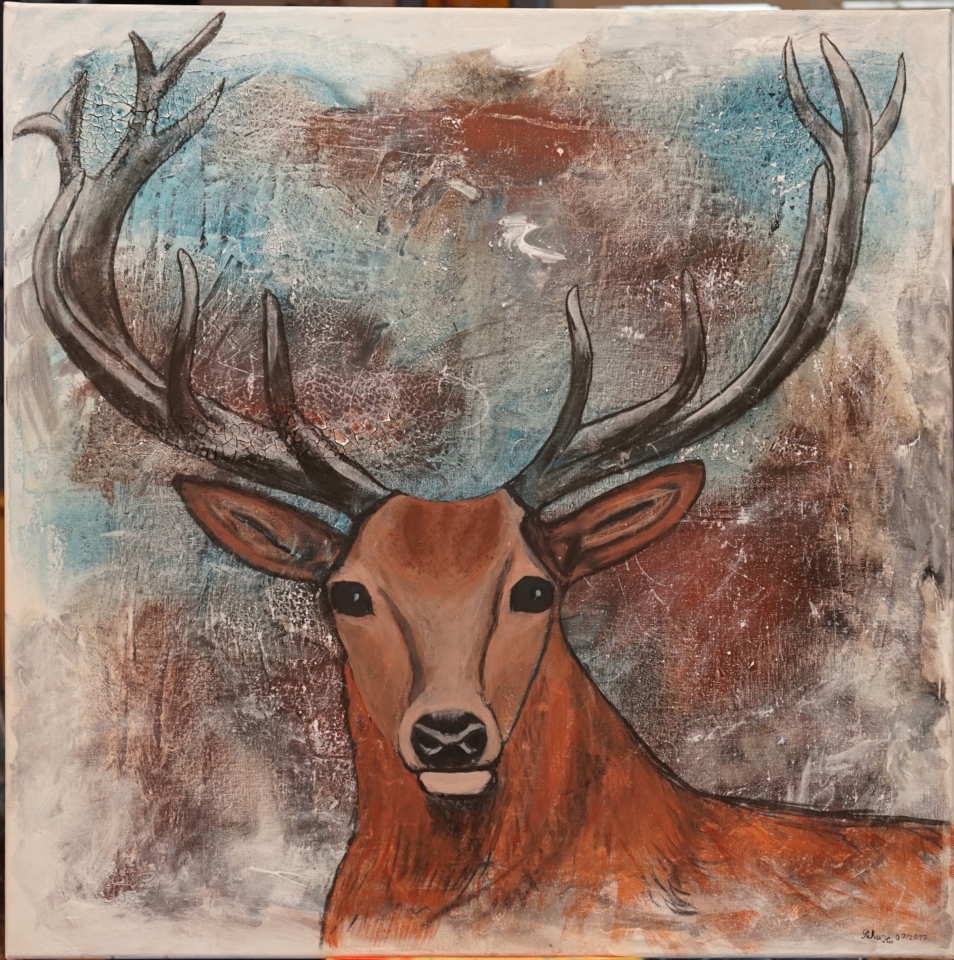Als es 2000 beruflich in die Schweiz ging schlief dieses Hobby leider ein und auch durch das damals rückläufige Interesse an Seidenmalerei verschwanden auch die hochwertigen Farben für Seide vom Markt. Unser gemeinsamer Einstieg in die Malerei weckte dann auch wieder das Interesse am Zeichnen. Autodidaktisch habe ich mir das Zeichnen beigebracht, z.B. wie übertrage ich möglichst korrekt Bilder von Fotos oder Natur auf mein Zeichenpapier. Bei unseren Lehrgängen haben wir auch einen Ausflug in die Welt der Airbrush und Ölmalerei gemacht. Ich lass mich auch immer wieder in die abstrakte Malerei, vorzugsweise Collagen, ein. Mein Malerherz schlägt aber eher für Landschafts-, Tiermalerei und Stillleben.